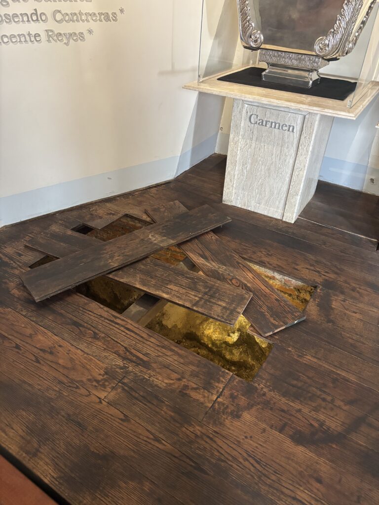 Y justo cuando crees que ya entendiste la magnitud del lugar, aparece uno de los elementos más perturbadores: el hoyo en el suelo donde intentaron esconderse. No es una recreación, no es una anécdota flotando en una placa de museo. Está ahí, abierto, visible, casi íntimo. Me detuve varios minutos, simplemente mirando. Pensar en alguien metiéndose allí, temblando, escuchando el caos de afuera, esperando no ser descubierto… fue una imagen que me atravesó más que cualquier panel explicativo. El suelo mismo cuenta una historia de desesperación, de miedo, de decisión humana en un momento límite.