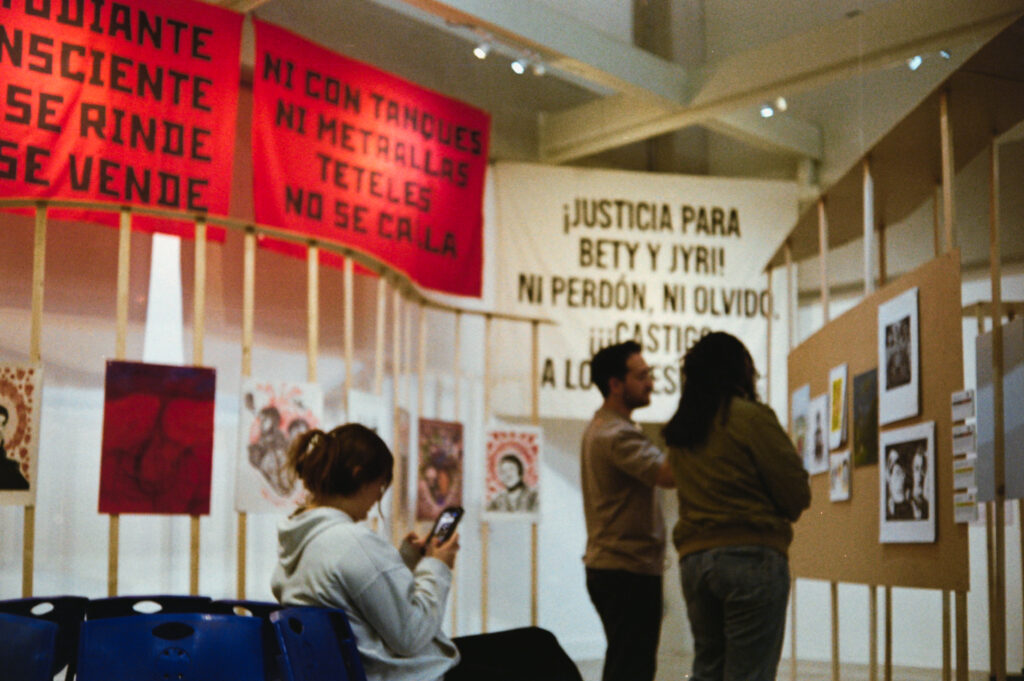 La estructura de la exposición busca acercarnos al diálogo. No se trata únicamente de mirar obras, sino de escuchar las historias. Las piezas se organizan para invitar a una escucha activa, y es el trabajo de los integrantes de Espacio Cotidiano lo que nos ayuda a conectar con las personas y los discursos abstractos de las luchas.